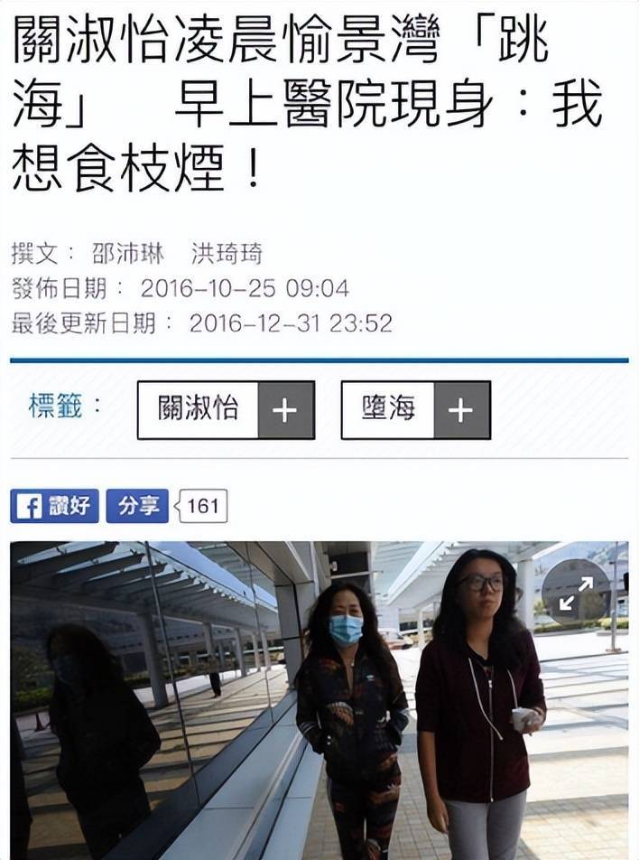 2016年,关淑怡突然跳海,被发现后紧急送往医院。